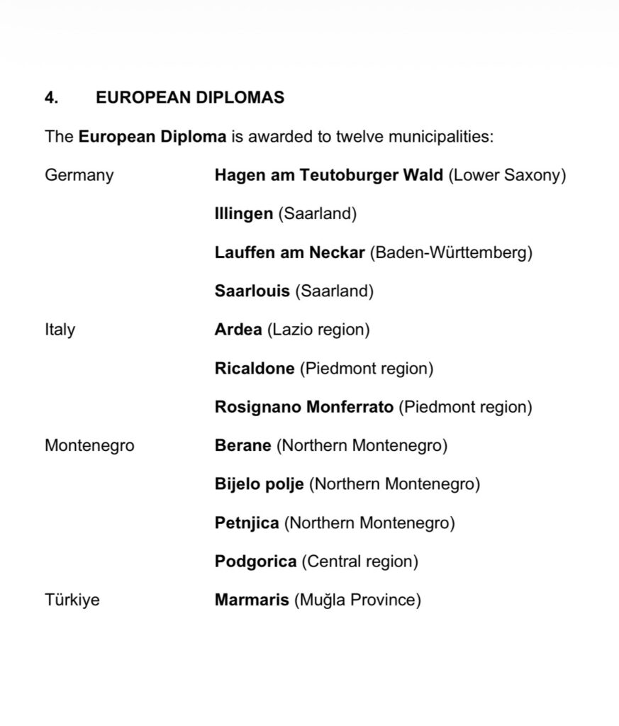 Među nagrađenim gradovima su i crnogorske opštine Berane, Petnjica i Bijelo Polje, kao i brojni gradovi iz Evrope, uključujući gradove iz Njemačke, Italije, kao i Turske, što dodatno potvrđuje značaj ovog priznanja i standarde koje Podgorica dostiže u evropskom kontekstu.