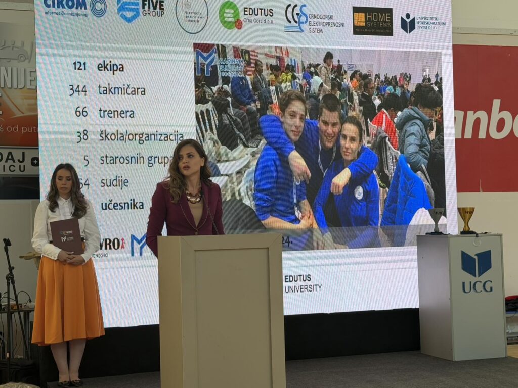 Predsjednica Skupštine Glavnog grada, dr Jelena Borovinić Bojović, govorila je na otvaranju državnog takmičenja iz robotike WRO 2026, koje je održano danas u Univerzitetskom sportsko-kulturnom centru, u organizaciji Mašinskog fakulteta Univerziteta Crne Gore.